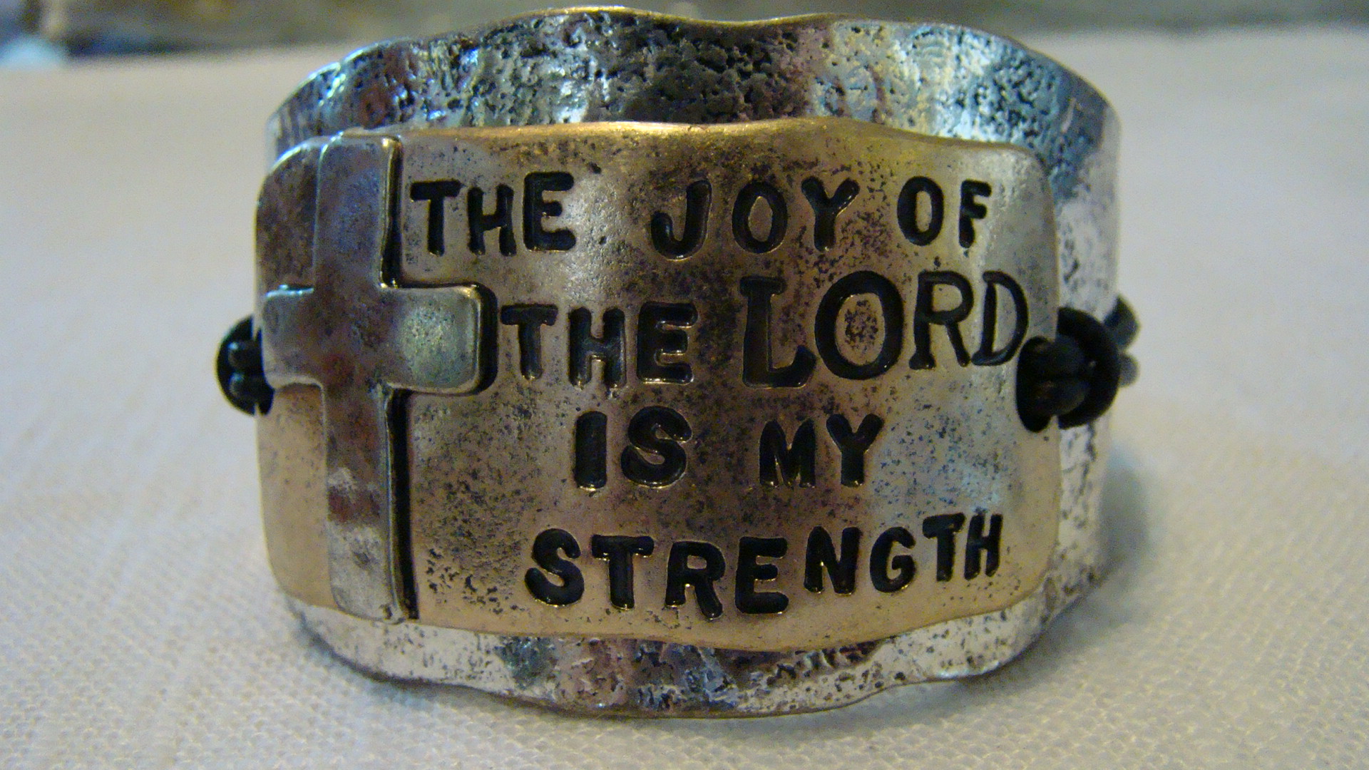 Silver Gold The Joy of The Lord is My Strength Bracelet